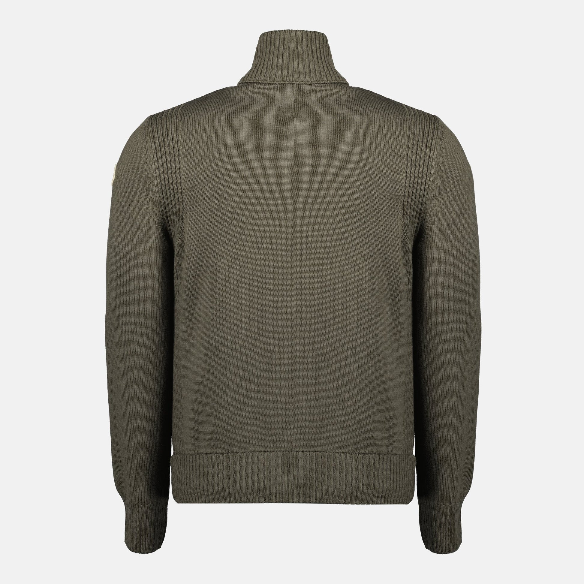 The zipped khaki wool cardigan from Moncler is designed for men. It is part of the Autumn-Winter 2025 collection.