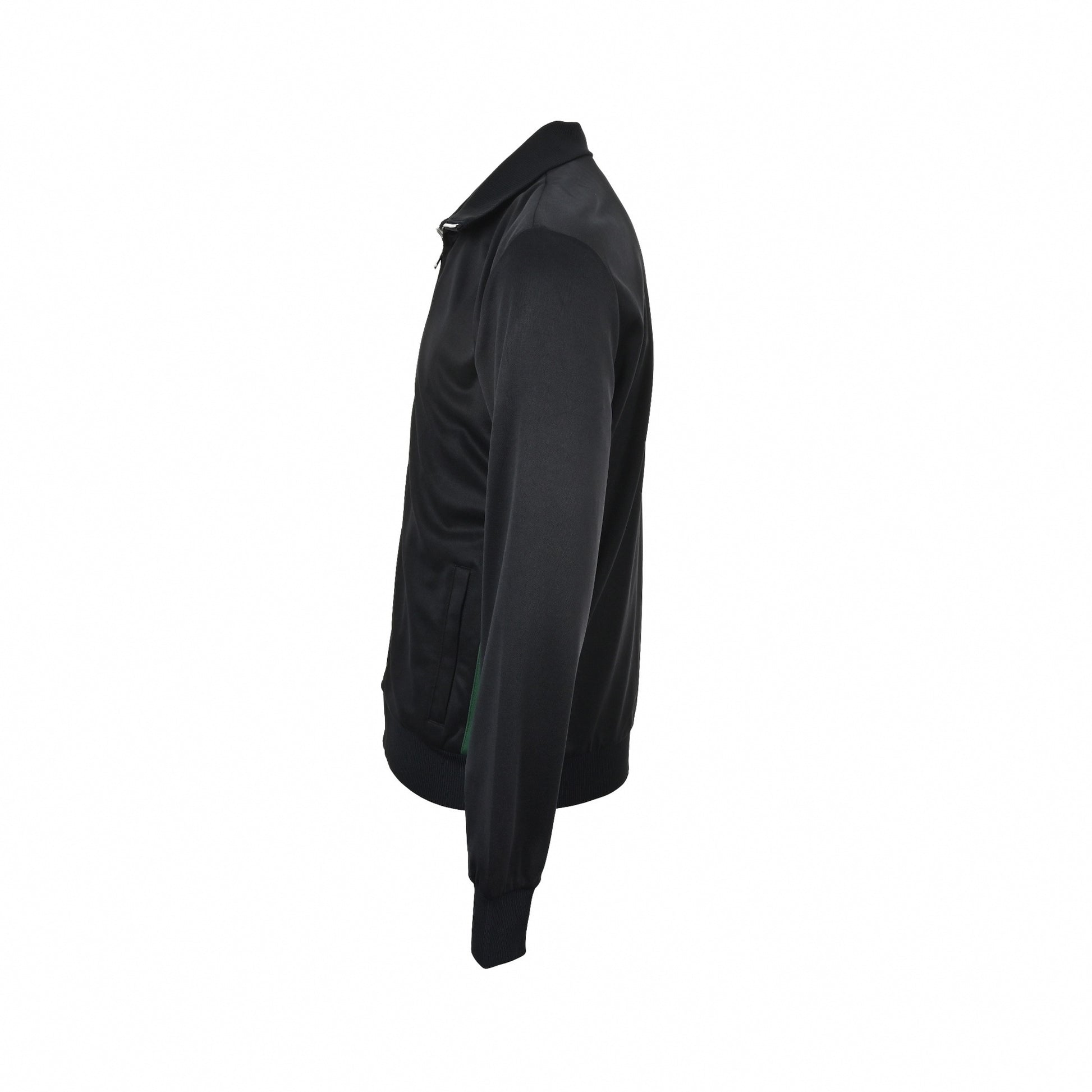 Crafted from a structured technical jersey cotton blend, this set delivers a comfortable, breathable fit with a premium hand-feel. The design is defined by the iconic green and red Web stripe running down the sleeves and pant legs, creating an unmistakable graphic contrast against the deep black base. Finished with a zip-up high collar jacket and relaxed drawstring pants, this is a versatile heavy-hitter for your daily rotation.